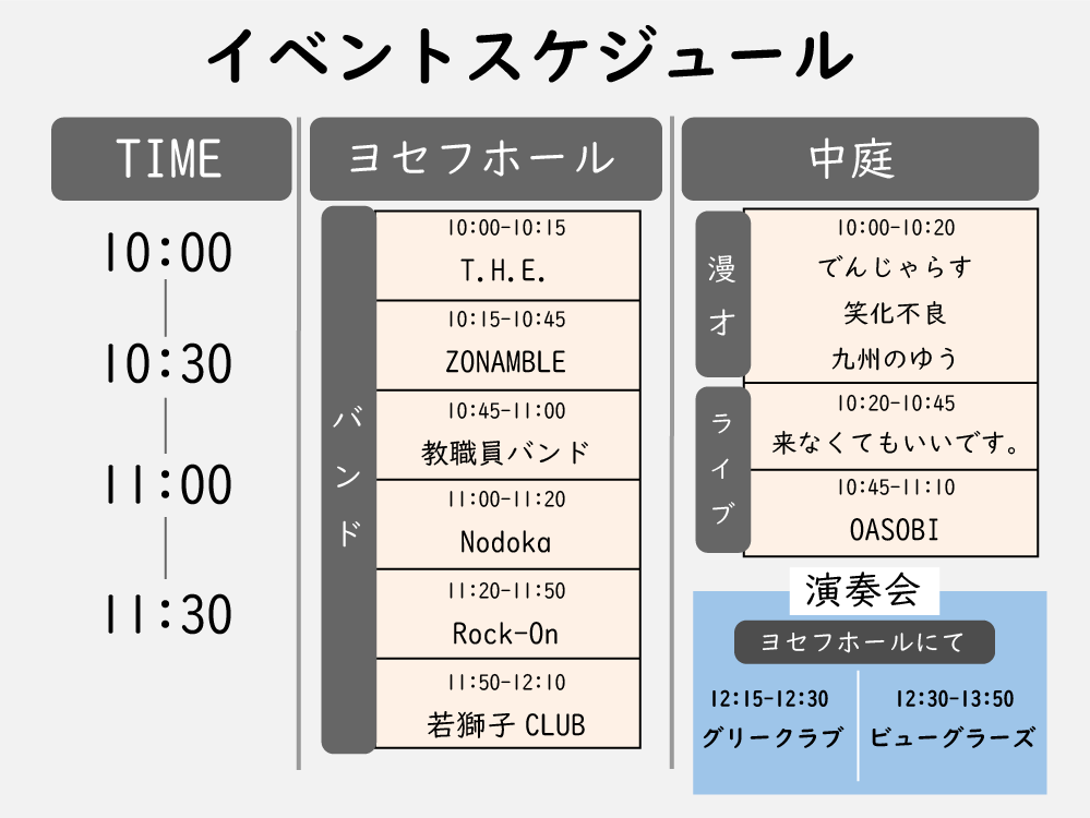 名物ラ・サールバーガーや、山形屋様とコラボした限定の「金生まんじゅう」など、バザー名物の味をお楽しみください。