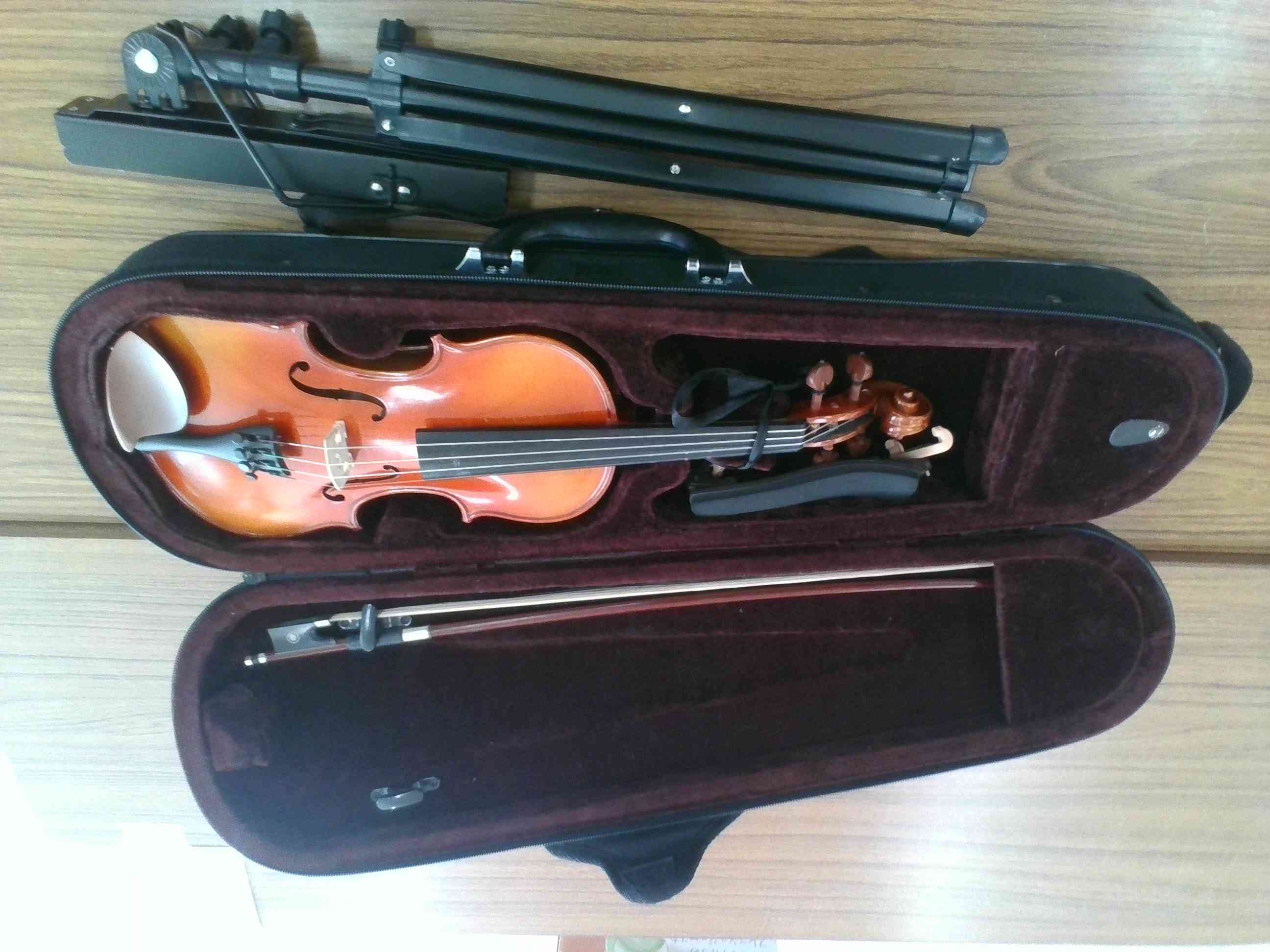 子供用の1/4バイオリン(中古品)です。譜面台もセットとなっていますので、初心者のお子様にピッタリです。