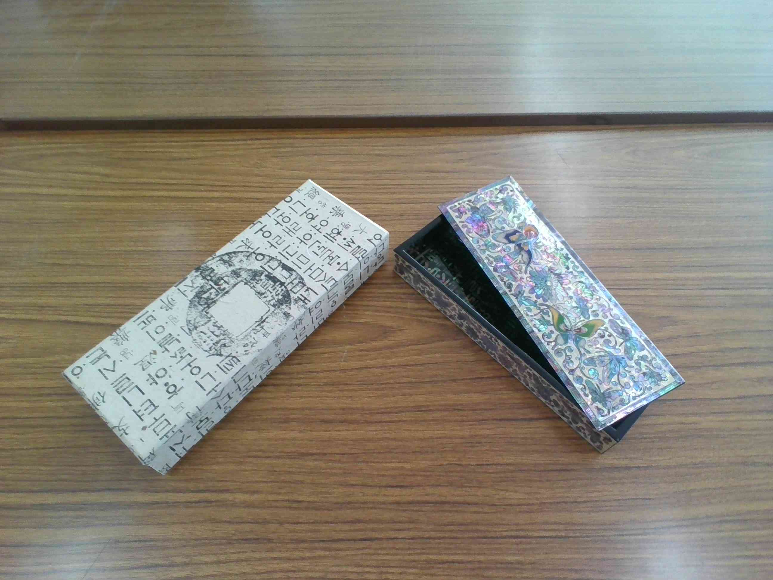 韓国で作られた、美しい螺鈿が外にも内面にも施された漆器です。小物入れにいかがでしょうか。